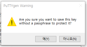 우선 Save private key를 눌러 .ppk 파일을 저장한다.