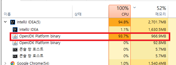 메모리와 CPU 점유율이 기하급수적으로 증가하고 있다. 그만 살펴봐도 될 것 같다.